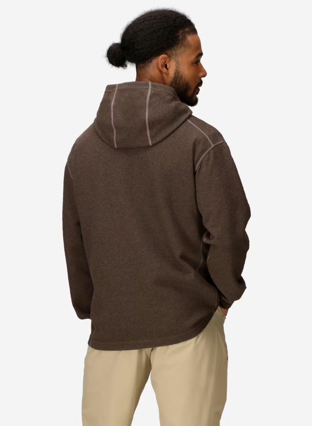 Удобен и функционален мъжки суитшърт със структуриран плат, съчетаващ мека вътрешна повърхност с текстурирана външна страна и практични детайли, подходящ за ежедневие, къмпинг или активни преходи.